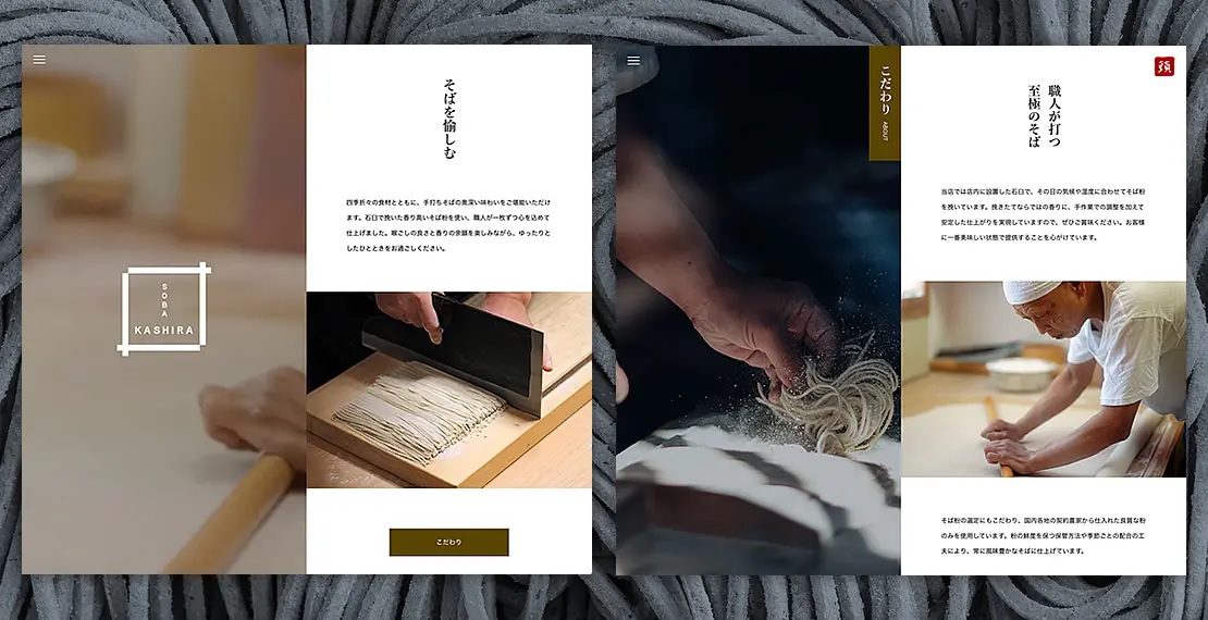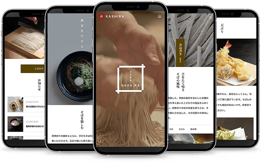 KASHIRAのスマホデザインは、モバイルサイトと思えない臨場感がデフォルトで備わっています。スマホで見た時に「お!」と注意を引くサイトが作れます。