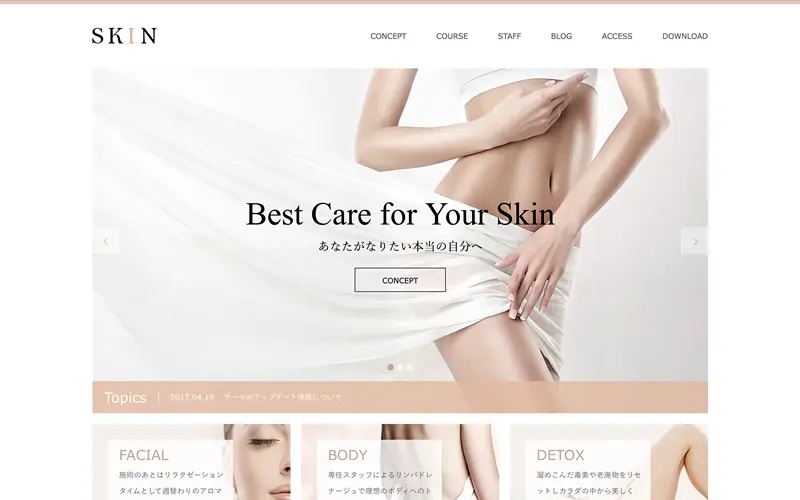 プロデュース事業・会員募集サイトにも有効活用できる汎用性の高いテーマ「SKIN」