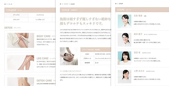 サロン系店舗ホームページの役割は、多くのアクセスを集めて店舗の認知を獲得し、お問い合わせをしてもらったり、予約や来店に繋げることです。そしてホームページを閲覧しながら「日常を忘れることができる極上の体験」や「新しい自分に生まれ変わる自分像」そんなイメージを膨らませて疑似体験させることです。