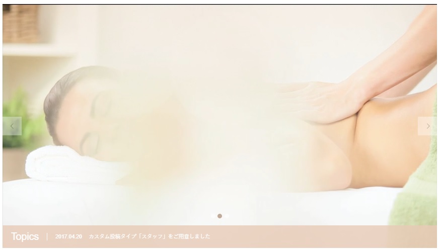 例えば、エステサロンのホームページであれば【ターゲットの感性にダイレクトに訴える静止画】【店舗内の極上の空間を再生して見せる動画】【コンセプトやサービス内容がビジュアルで伝わる静止画】【疑似体験をさせる施術風景の動画】といった組み合わせで、最大5つまでのスライダーを設定することができます。
