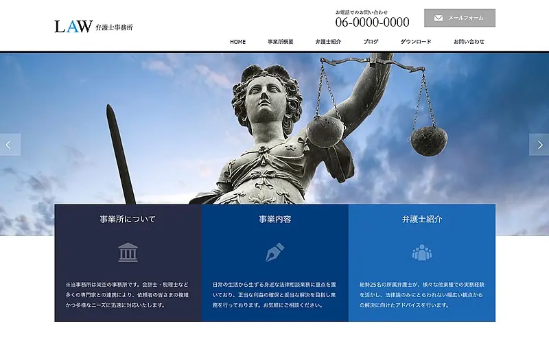 【士業、医療、企業サイト】に最適。理性と権威を象徴とするWordPressテーマ「LAW」