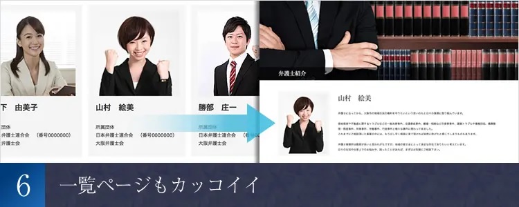 士業・企業サイトのスタッフ紹介ページは、組織のカラーを直感的に伝える効果があります。これはクライアント向けでもあり、求人向けにも必要なページとなります。