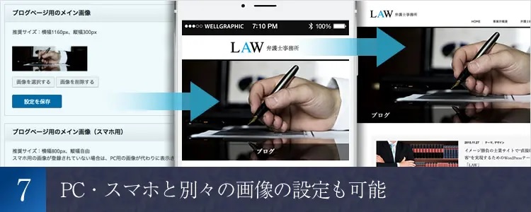 当テーマには、現代でよく使われている各デバイスの画面サイズで美しく表示されるような配慮がなされてますので、効果的な「印象付け」を狙うことが出来ます。すべてはピクセルレベルで計算されたレイアウトです。