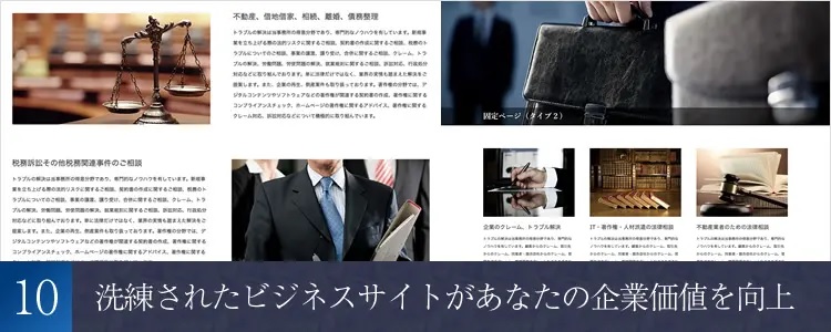 弁護士、税理士、司法書士等の士業サイトだけでなく、企業サイトなど幅広く活用できる