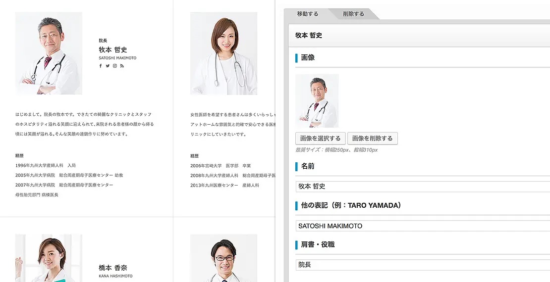 医師・スタッフ一覧を簡単に掲載・更新可能!ページビルダーにオリジナルコンテンツ「スタッフリスト」を搭載