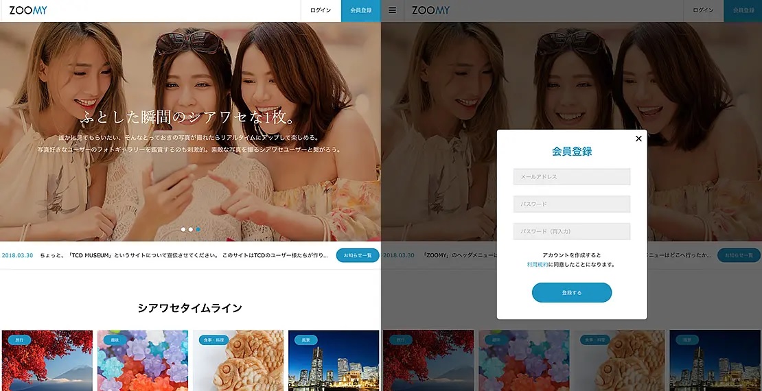 スマホで撮ったお気に入りの写真をその場でサッと投稿したり、おすすめのお店をフォロワーにシェアしたり、アットホームな魅力あふれるSNSサイトを一個人で、仲の良いグループで、自社で、もっと手軽に構築してもらうために「ZOOMY」は生まれました。