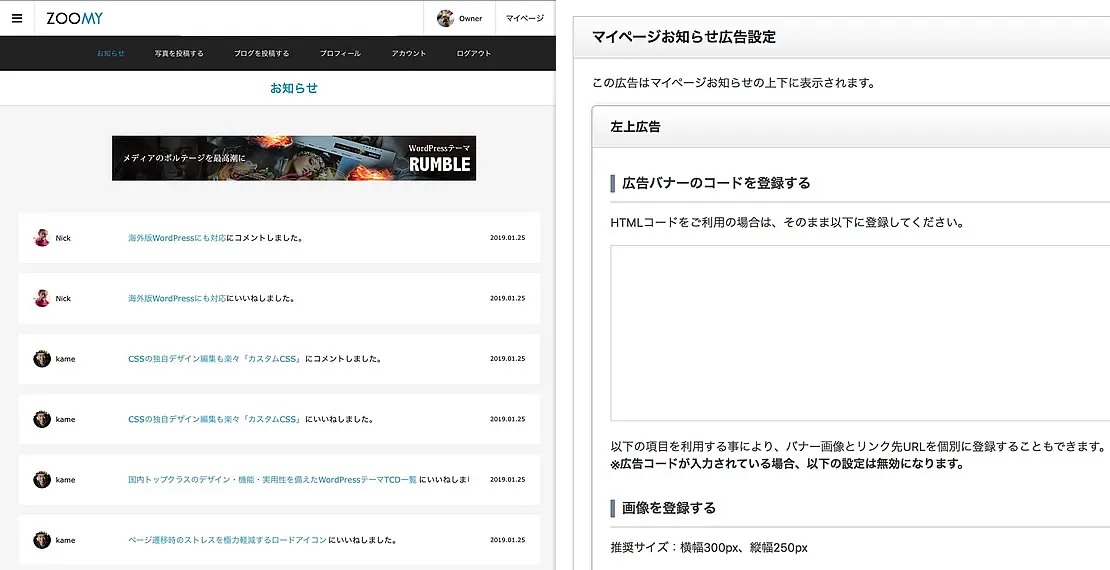 なぜなら、ユーザー会員同士の横のつながりを強める、いいね、フォロー機能はもちろんのこと、使いやすさにこだわり抜いた写真や記事のアップロード機能などSNSに必要な機能の全てをテーマ内に実装しているからです。ユーザー投稿とそれに対してアクションをダイレクトに反映するこの仕組みは後に起爆剤となり現れるのです。