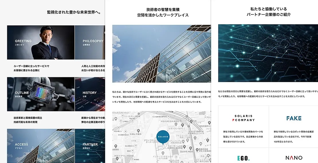 - 2 先端を走り抜ける企業を彷彿とさせる、壮大なトップページ。SOLARISは企業イメージを激変させます。