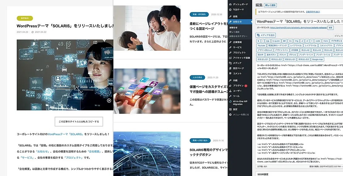 すべてを兼ね備えたコーポレートWordPressテーマが「SOLARIS」です。