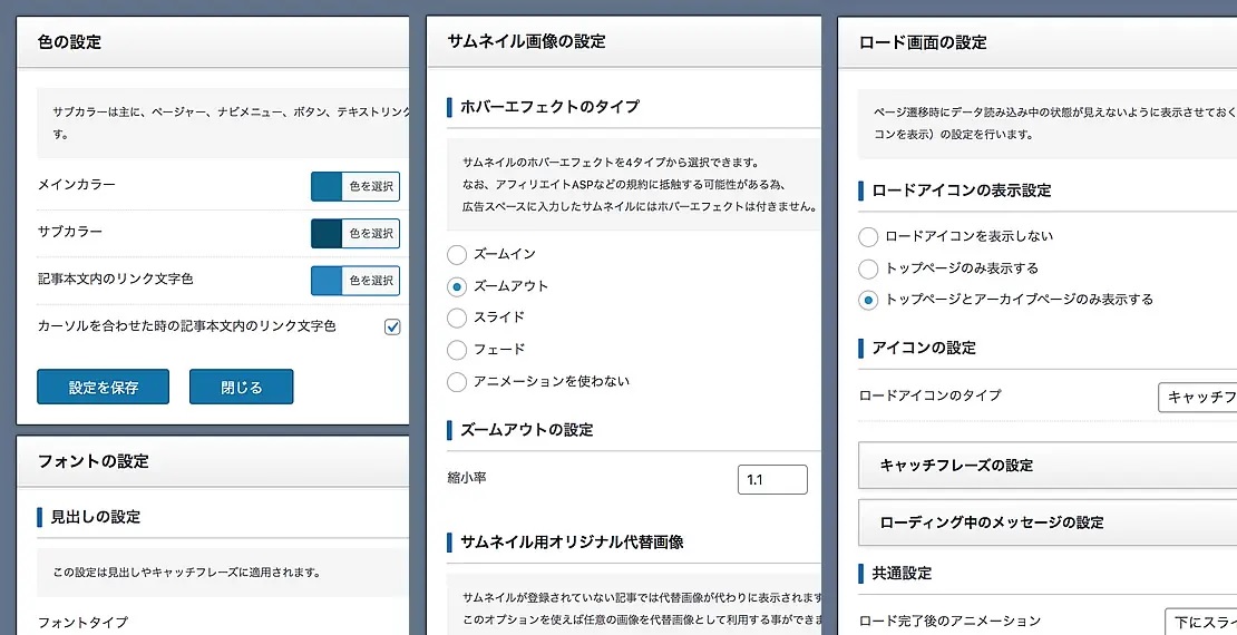 ・ホバーエフェクト設定(ズーム・スライド・フェード)